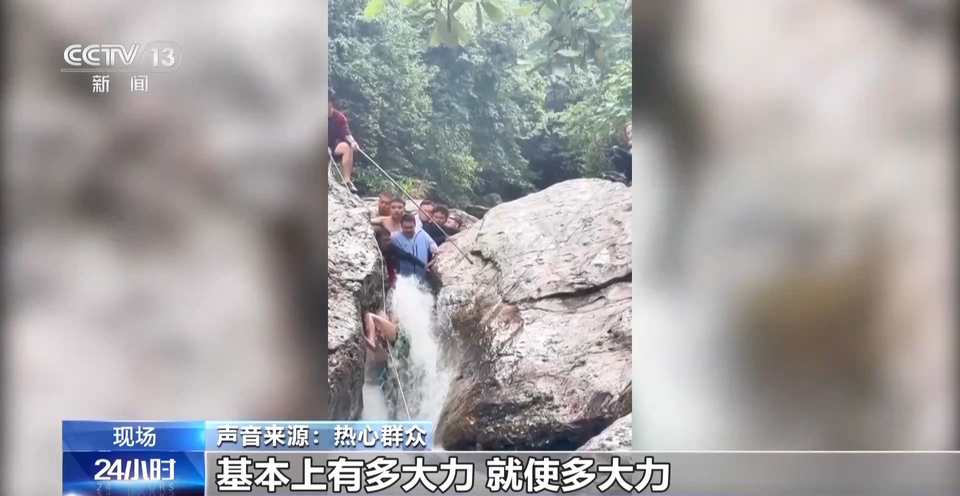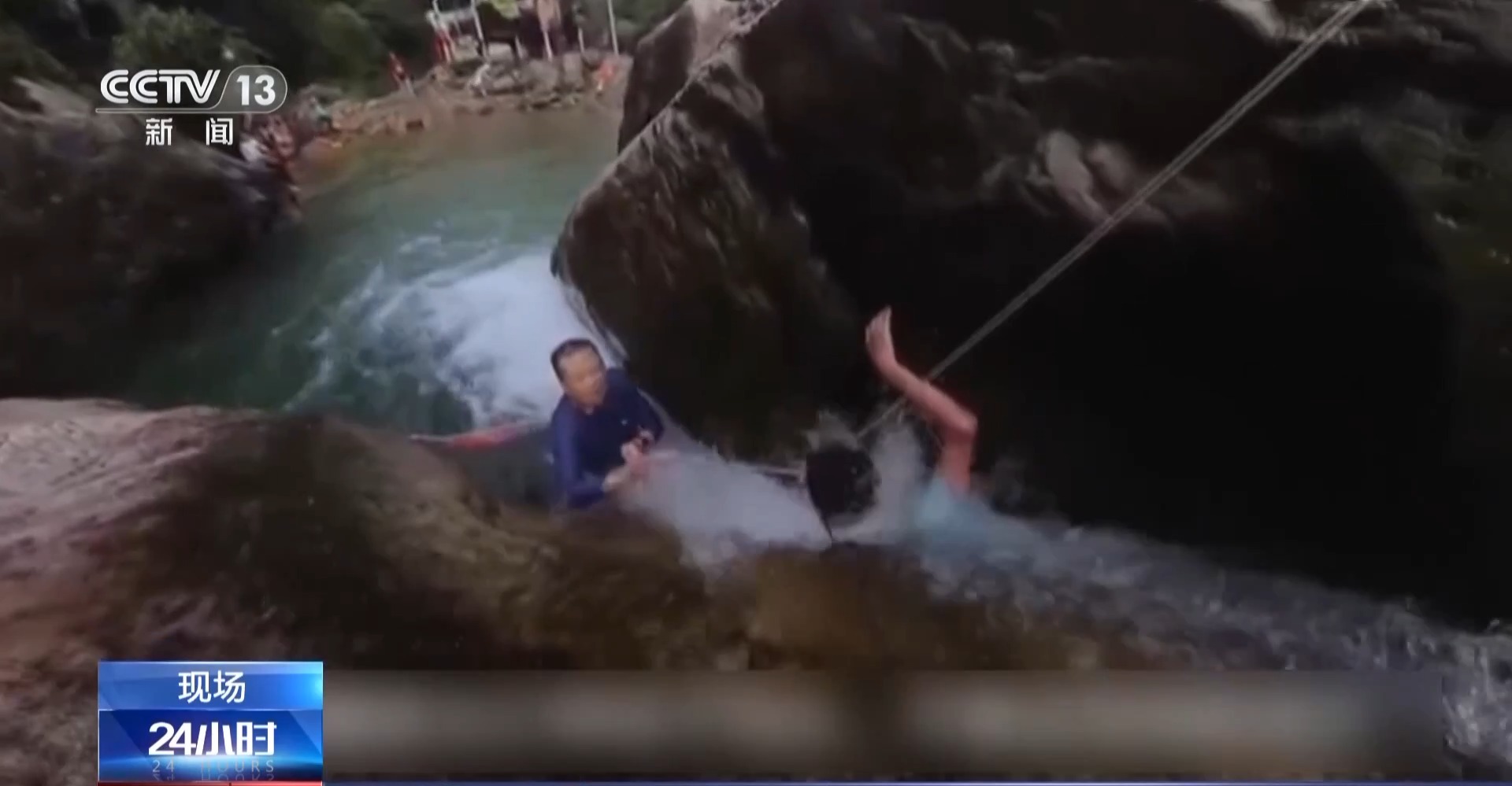 视频中,一小男孩卡在湍急水流的石缝中动掸不得,大水一个劲地冲刷着孩子的头部,并常常常没过孩子的口鼻。几名须眉构成东谈主墙站在上游,尽可能减少水流对孩子的影响。