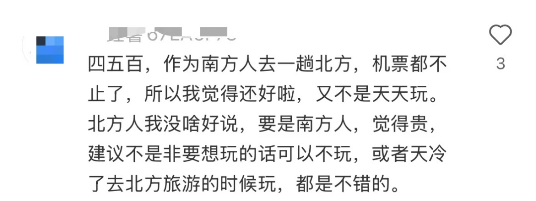 不外也有少数破钞者理解:“南边室内雪场运营本钱高,省去了路费住宿,家门口的顶级花样偶尔体验可行”。